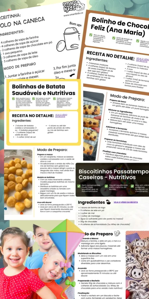 As receitas foram criadas para agradar qualquer criança, com ingredientes simples e acessíveis que qualquer pessoa pode preparar.