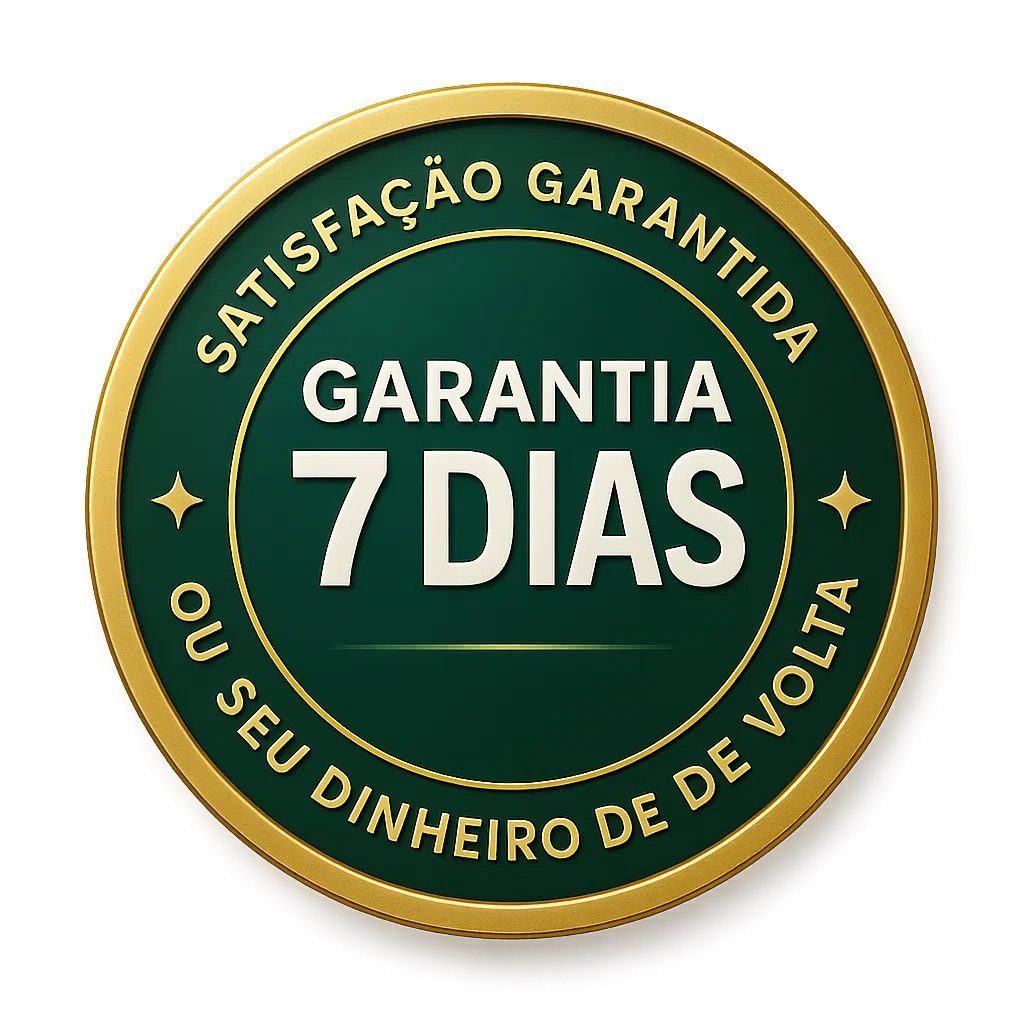 Sem problema! Você tem 7 dias de garantia para testar. Se achar que o guia não é pra você, devolvemos 100% do valor — sem perguntas e sem burocracia.
