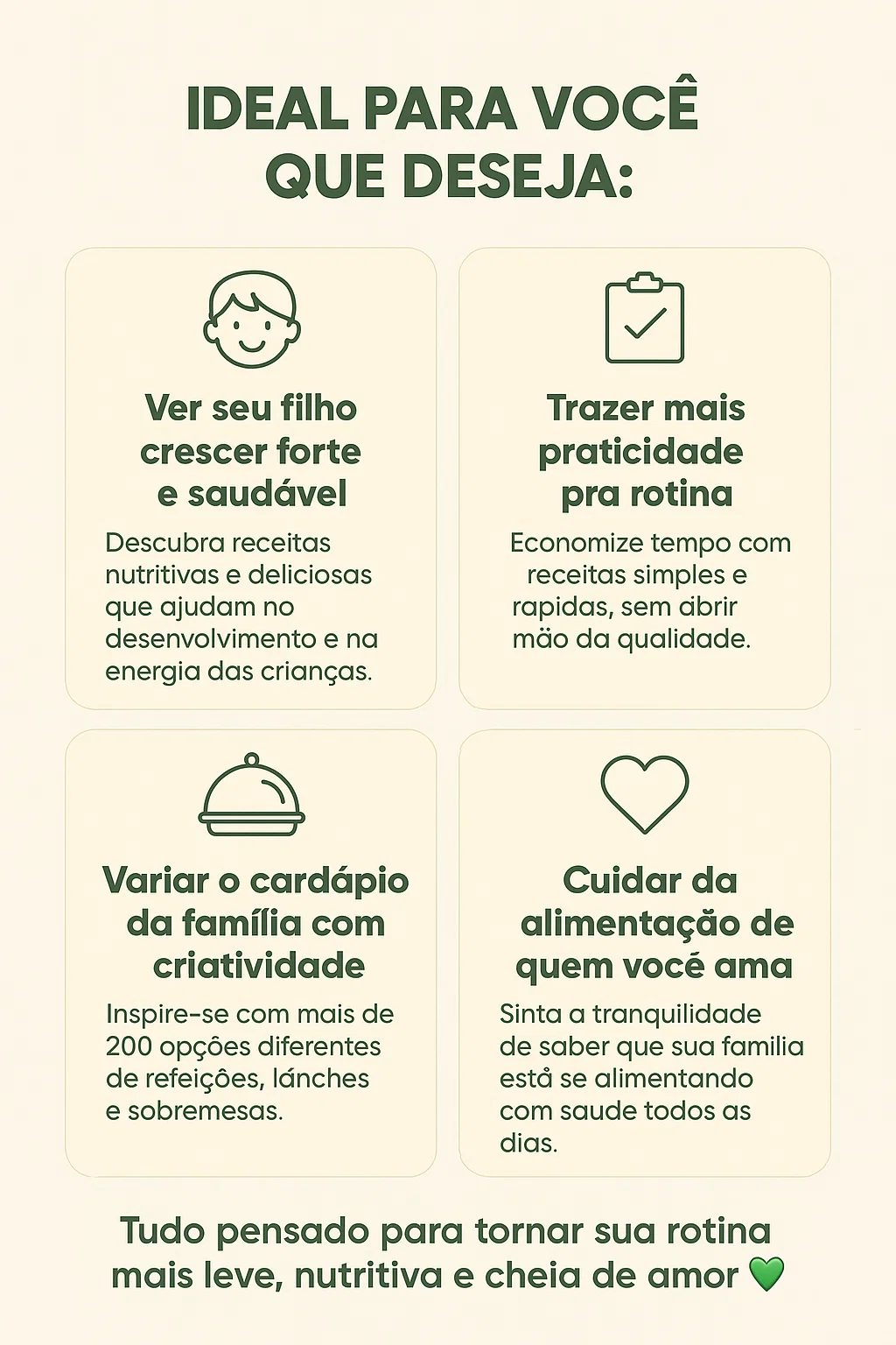 ✅ Receitas testadas e aprovadas por mães que querem praticidade e nutrição.